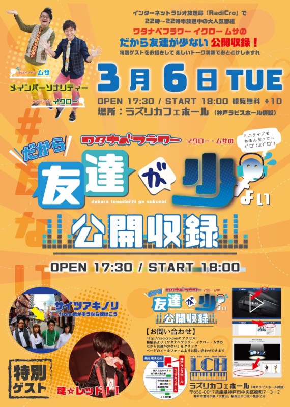 RadiCro「ワタナベフラワーイクロー・ムサのだから友達が少ない」公開収録イベント開催!!