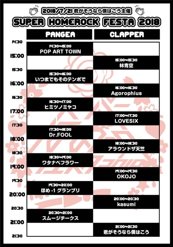| 時 間 | 開場14:00 / 開演14:30 ※ワタナベフラワーの出演はPANGEA18:30~19:00予定 |